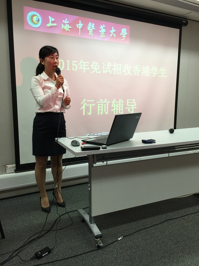 2015年8月22日,基础医学院辅导员冉秋老师和我校教务处张怡雯老师进行了由中国教育留学交流(香港)中心主办的香港免试生赴内地行前辅导讲座,当天下午2:30,讲座于香港教育局九龙塘教育服务中心西座4楼如期举行。我校免试录取的部分2015级港生、2014级中医学(港、澳、台五年制)陈晓洋、马慧华同学,以及中国教育留学交流(香港)中心的工作人员出席了本次讲座。