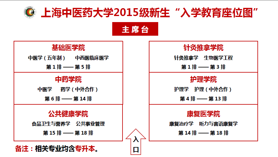 【新生季】上海中医药大学2015新生“入学教育”座位图
