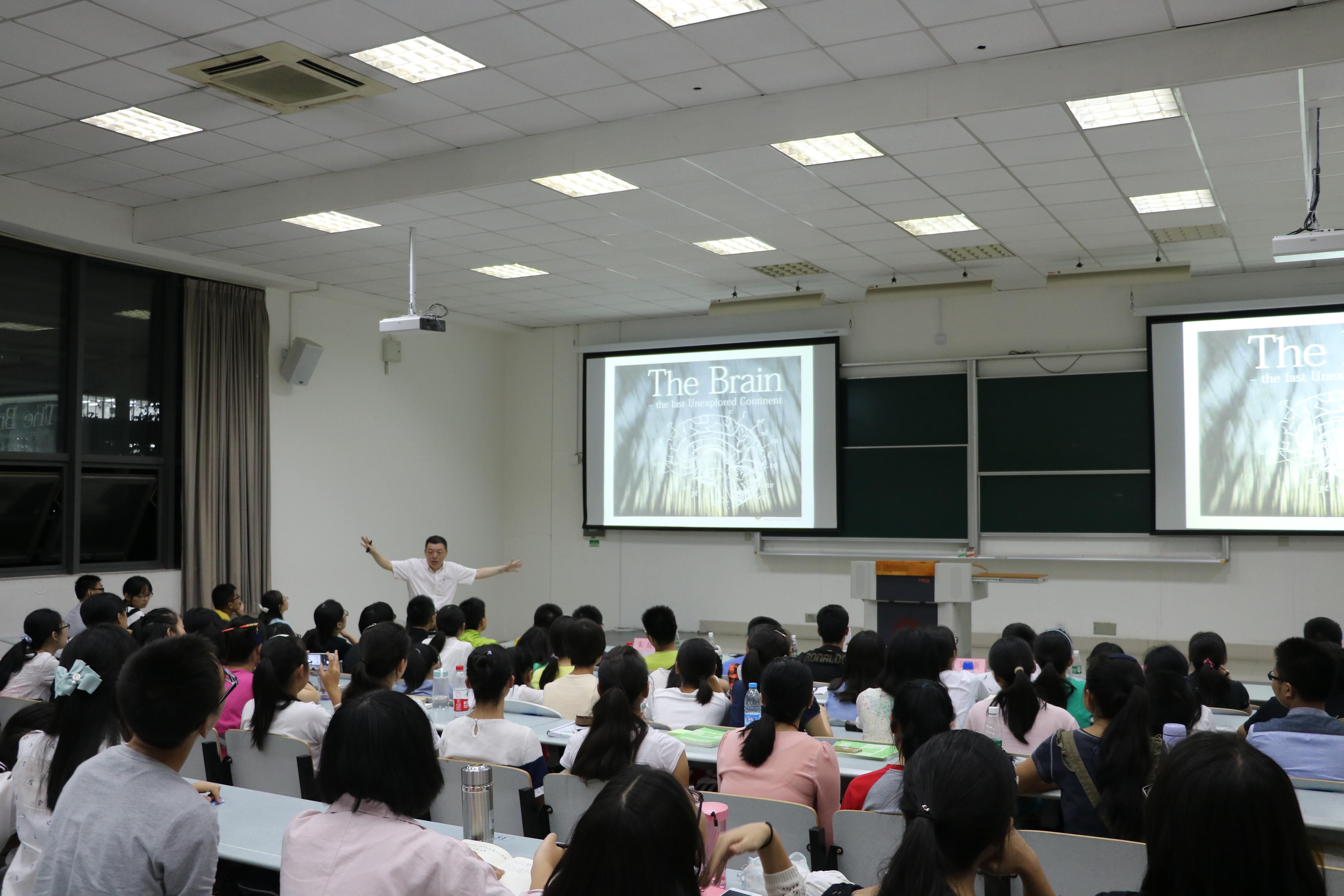 见面会的第二部分是胡校长的新生入学教育讲座。在讲座中,胡校长首先明确提到,论道中西实则相通,培养辩证思维。通过展示石涛的山水画作与达芬奇的人物肖像画作来引导同学们思索中西方文化的差异。他一语点明,东方文化侧重宏观,西方文化侧重微观,而实则两者相通,东方文化是从宏观到微观,再到宏观。其次,胡校长谈及勉励静心做学问,敢为人先。“君子欲讷于言而敏于行。”胡校长引用了《论语》中的一句话,勉励我们要静心做学问,不仅研读古籍古方,还要敢为人先,进行创新,在未来成为能够独立研究的医生。他在学校简介中介绍了我校的办学指导思想、教育理念、机构设置、名老中医及名誉教授、创新活动等内容,让我们了解到上海中医药大学传承与创新并举,科研与教学并重。“今药非古药、今人非古人、今方非古方”,因此,我们要在传承的基础上进行创新。他还举例了中医大学子获得国家青年创新比赛奖项的例子来证明我们要具备创新素质,为中医药的发展作出贡献。总之,要从学好现在的高等数学、化学、英语等科目做起,多学科融会贯通,自然会在今后的专业领域中有所顿悟。心静下来,才能真正完成自己的使命,坚守住这份内心的宁静。