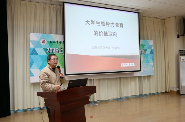 开班仪式上,上海中医药大学学工部部长陶思亮向与会嘉宾和培训学员介绍了培训背景和相关情况,来自华东师范大学教育学部的白雪源和来自成都电子科技大学的沈倩作为学员代表相继表达了对本次培训的殷切期待,上海市学生德育发展中心主任沙军讲话,他肯定了上海中医药大学将领导力教育融入大学生“大德育”教育的举措,并对本次培训给予了高度赞扬,最后,上海中医药大学党委副书记朱惠蓉做总结发言,她表示,上海中医药大学会不负厚望,在大学生德育工作上踏实努力,力争做领头羊。而后,作为第一讲,中国大学生领导力发展研究中心主任张智强教授给学员们带来了题为“大学生领导力教育的价值向度”的精彩培训。