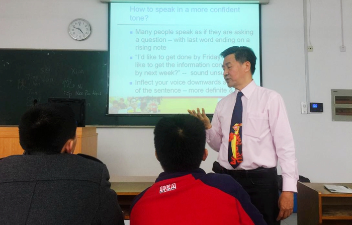 3月31日下午四点到六点,在8306教室,尽管第二天就是清明小长假,但是扬帆导师团的学生们坚持坐在教室里,静静等待一位特殊的客人——来自新加坡的爱国华侨倪沛豪先生。倪沛豪先生是是新加坡理工学院的高级讲师,新加坡塑料与橡胶研究所技术委员会主席。精通英语、华语及马来语,对华人尤其是英语为非母语的华人在用英语交流中出现的常见问题的研究,经常在大陆等地讲授社交英语技巧。这次倪先生受邀专门给扬帆图师生讲授国际学术交流中的英语语言技巧及沟通礼仪、给学生介绍新加坡的过去、现在以及新加坡的未来发展。