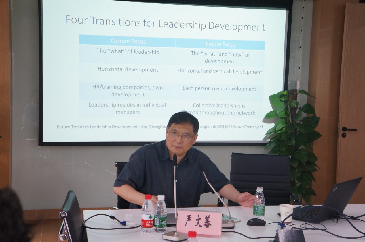 严教授1984年留学美国纽约州立布法罗大学,1991年获教育心理学博士学位,毕业论文获美国心理学会优秀论文奖。主要研究兴趣包括教育研究方法、教育评价,教育政策分析、及国际比较教育等。多年前开始大学生领导力的研究工作,且在大学生领导力教育方面颇有建树。讲座中,严教授首先介绍了领导力的经典理论,从领导力理论中深入浅出介绍了大学生领导力教育的发展,他并为学生工作者指出了领导力发展的未来几大趋势:大数据时代下中国大学生领导力的培养和研究等。