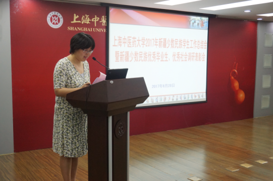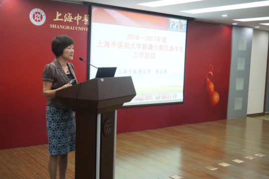 6月28日下午两点,行政楼301会议室一片温馨和谐的氛围,上海中医药大学2017年新疆少数民族学生工作总结会暨新疆少数民族优秀毕业生、优秀社会调研表彰会在这里在顺利举行。上海中医药大学党委副书记朱惠蓉、上海中医药大学副校长胡鸿毅、校党委校长办公室主任蔡贞贞、教务处长何文忠、学工部部长陶思亮以及各学院专管学生工作的书记都应邀出席了今天的会议。参加此次会议的还有洪汉英工作室成员和新疆少数民族学生,总结会由学工部副部长沈漫主持。