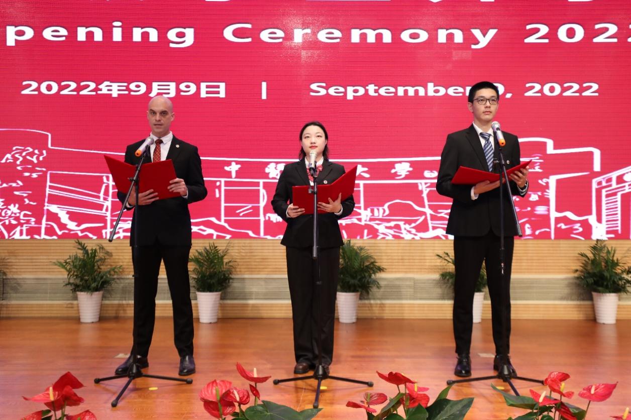 2022级本科生张兆毅,硕士研究生、国际学生(美国)周安,博士研究生孙漫沁作为新生代表在典礼上发言,表达了他们对中医药的热爱和传承发扬中医药事业的坚定信念。