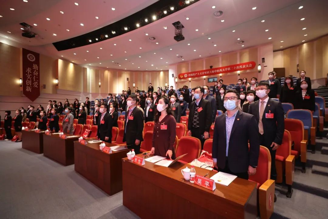在庄严的国歌声中,共青团上海中医药大学第二十次代表大会正式开幕。团市委副书记徐豪,我校党委副书记、副校长朱惠蓉,团市委学校工作部部长任浡,上海市卫生健康委员会、上海市各兄弟高校代表,以及学校相关职能部门、二级学院、各附属医院负责人出席大会开幕式。