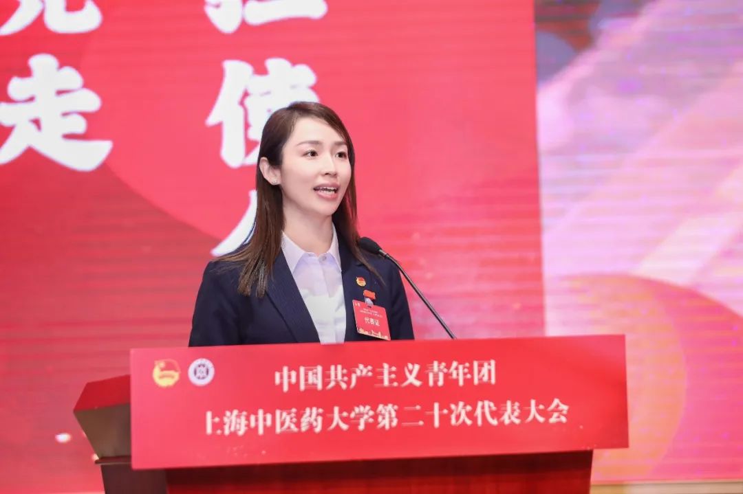 万婕代表共青团上海中医药大学第十九届委员会作题为“踔厉奋发跟党走 守正创新担使命”的工作报告,全面回顾我校第十九次团代会以来的各项工作,总结了基本经验,分析了新形势下共青团事业的发展要求和青年的历史使命,明确提出学校共青团下一阶段工作的指导思想、发展目标和主要任务。