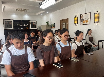 蒸制等待期间,师生围坐品鉴室,分享制作过程中的身心体验。同学们纷纷表示,在搓粉、过筛、压模的专注过程中,纷繁的思绪得以沉淀,紧张的情绪得到舒缓。指导老师巧妙地将同学们的实践感受,与中医药养生“形神共养”、“调身调心”的核心要义相联结,更点明正念的“觉知当下”、“不评判”、“接纳”等核心要素,与中医强调的“恬淡虚无”、“精神内守”等养心之道高度契合,共同指向身心和谐的终极目标。一次简短的静坐呼吸练习,让同学们更深切地感受到将中医“内观”智慧与正念觉知相结合的力量。
