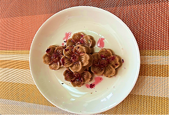 湿粉轻柔过筛的“细雪”场景,成为一次静心仪式;混合均匀的粉团中加入玫瑰花粉,让玫瑰的药性之美直观可感。模具压制环节,要求力道既要保证糕体成型不散,又需保持其天然蓬松口感,这考验着参与者当下的专注与觉知。