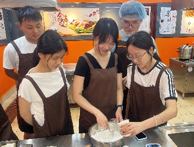 在专业老师的引导下,从精确称量药材粉料开始,当指尖滑过粘米粉的细腻、糯米粉的微粘、茯苓粉的颗粒感,以及山药粉独特的粉糯质地时,同学们不仅学习辨识常用药食两用食材的特性,更在触觉的专注中体验正念的力量。分次注入温水调和湿粉,追求“捏可成团,触之即散”的松软状态,这既是制作糕点的关键步骤,也暗合中医调和阴阳、讲究分寸的智慧。
