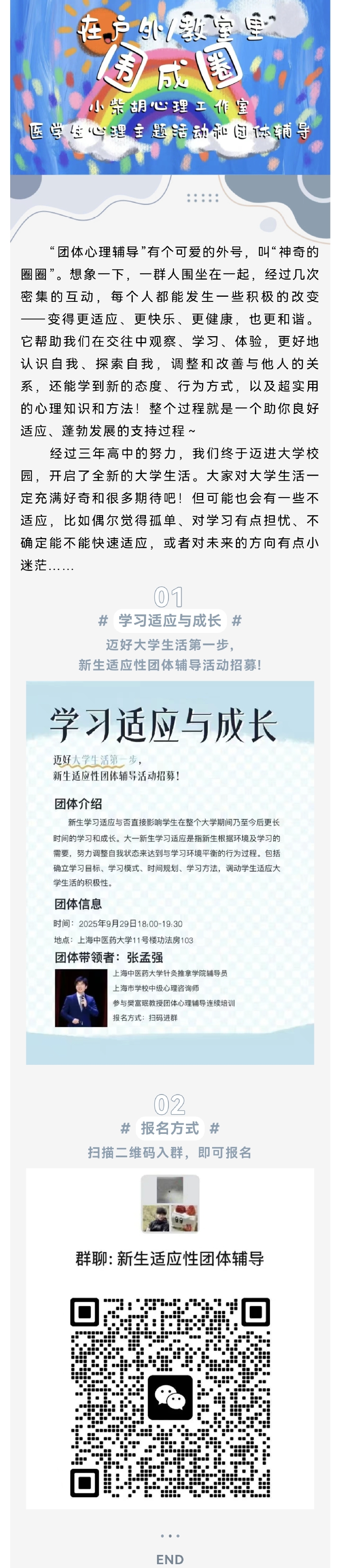 团体心理辅导|迈好大学生活第一步,新生适应性团体辅导活动招募!