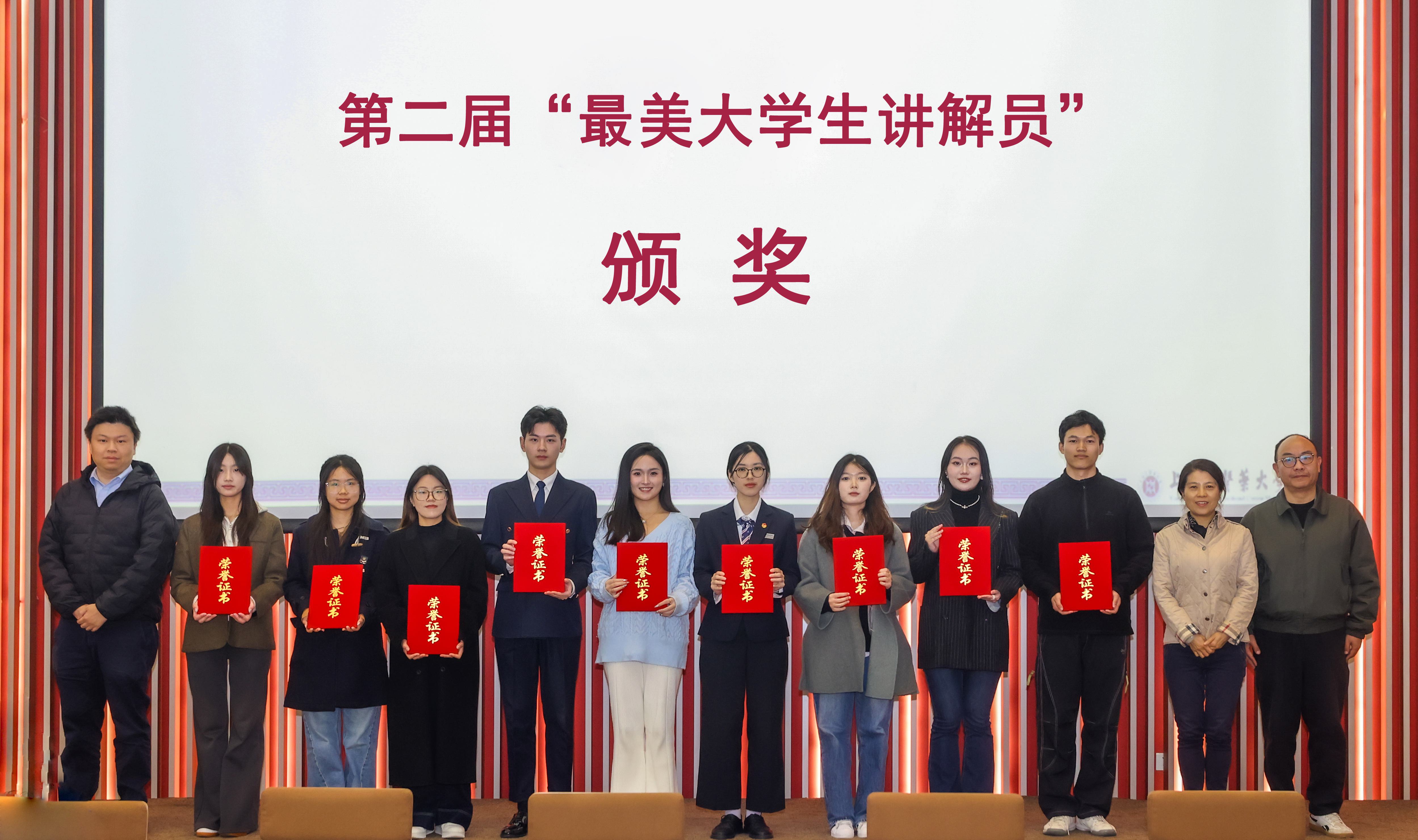 随后,校学(研)工部副部长林琳就项目实施情况进行专题汇报。上海第二工业大学苏翌雯老师作为高校代表发言。她以“最美大学生讲解员”邢霖婕同学的成长经历为例,阐述了馆校联动构建“资助+实践”育人模式的创新实践。与会领导为第二届“最美大学生讲解员”获奖学生颁发荣誉证书。获奖学生代表上海戏剧学院的托娅同学分享了在宋庆龄故居担任讲解员的感悟。她通过担任讲解员,懂得了最有力量的表达源于对内容的深刻理解与真诚敬畏。上海师范大学的赵飞同学则讲述了自己从勤工助学志愿者成长为上海市龙华烈士陵园专职讲解员的蜕变历程,生动展现了“受助-自助-助人”的成长轨迹。