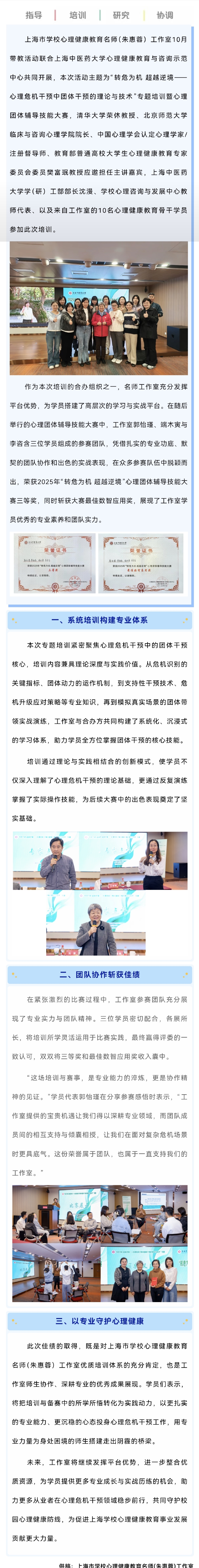 【媒体视角】上海学校心理:工作室NEWS | 携手心理危机干预培训 学员以赛促学载誉而归