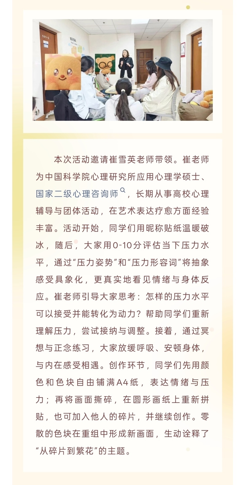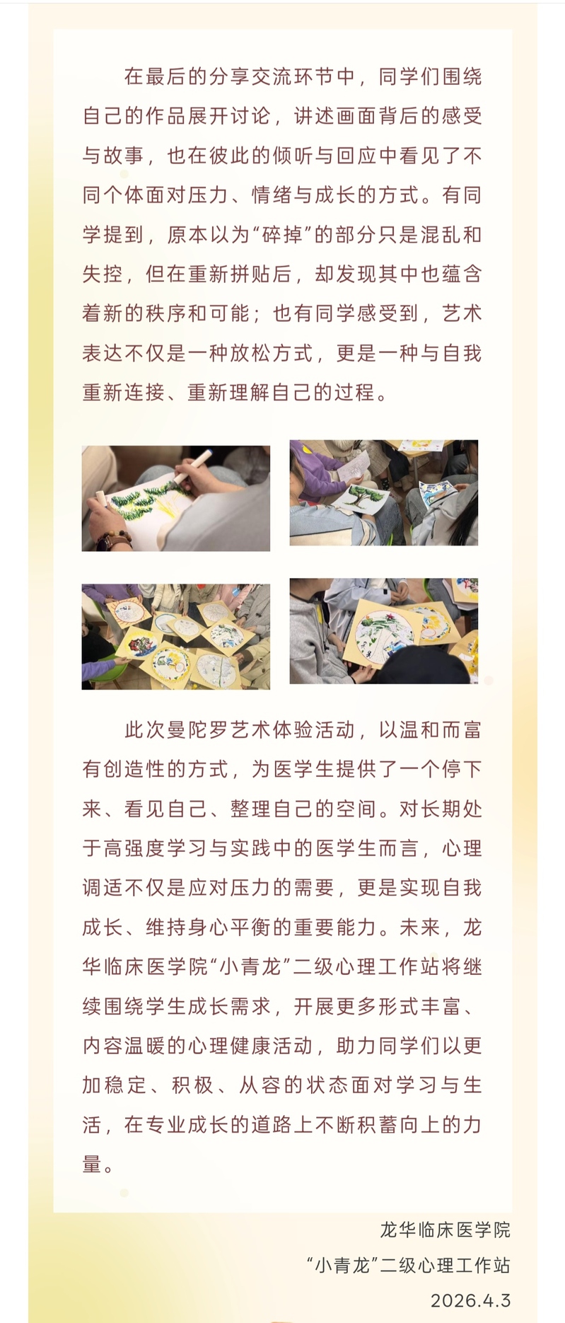 【心理活动季】龙华临床医学院开展“从碎片到繁花:医学生自我调适与秩序重建曼陀罗艺术体验”活动