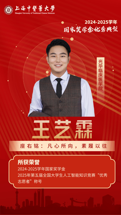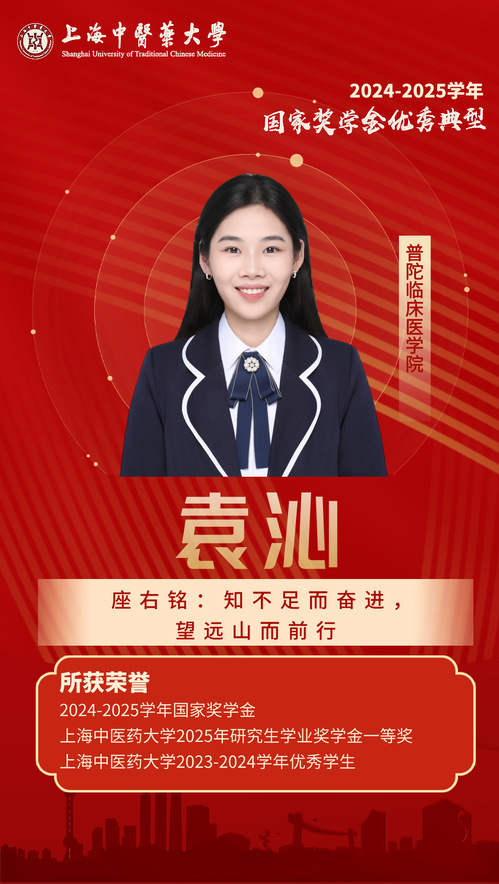 这些国家奖学金获得者展现了上海中医药大学优秀学生锐意进取、追求卓越的青春风采。他们以自身的奋斗故事激励广大杏林学子奋勇争先、砥砺前行。让我们以榜样为引领,在勤学善思中锤炼过硬本领,在知行合一中践行医者担当,以青春之我、奋斗之我在新时代的广阔舞台上书写属于杏林学子的精彩篇章。