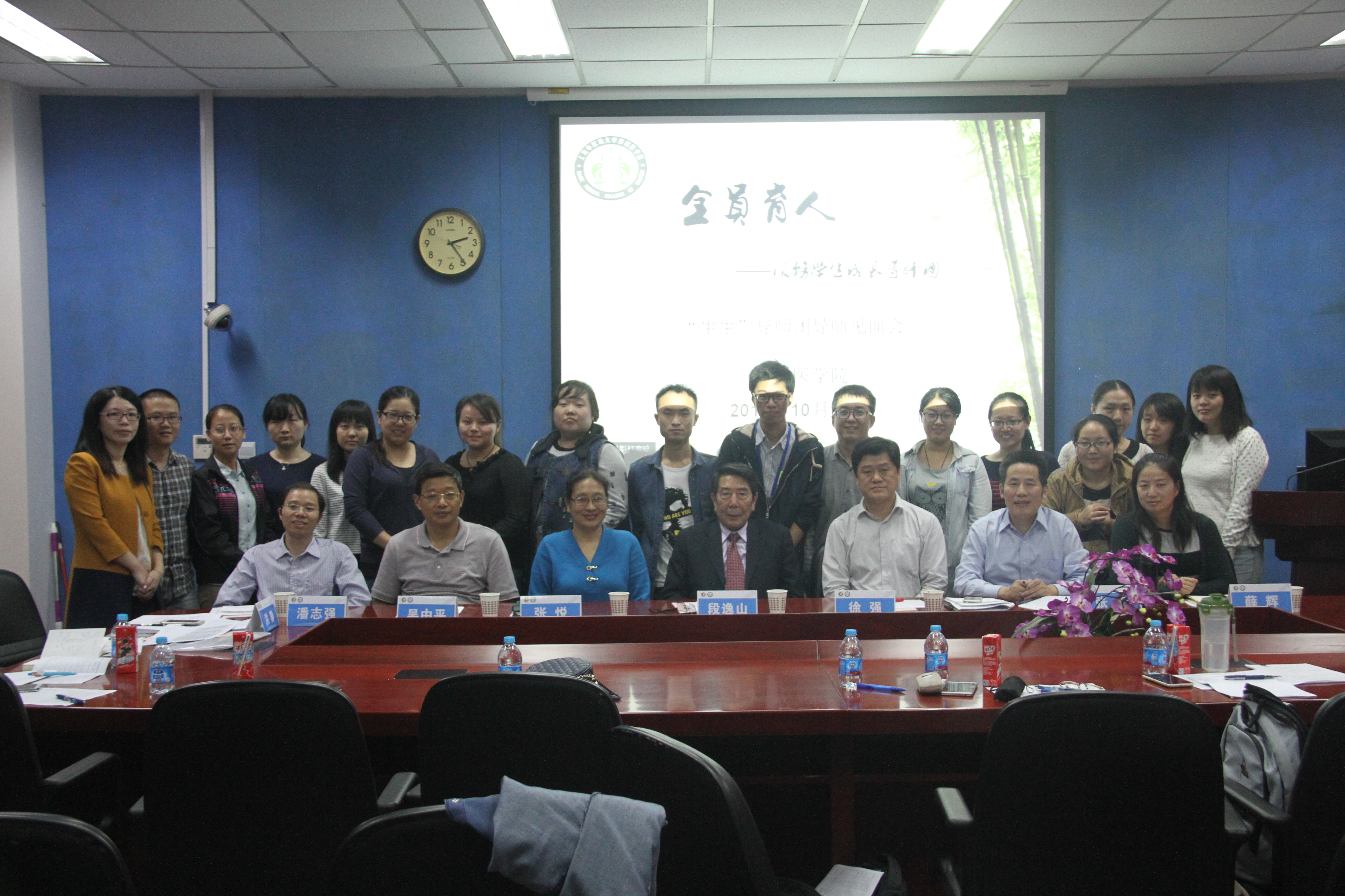 2015年10月14日13:30,基础医学院第一导师团——“生生”导师团师生见面会在7417会议室举行。作为该团团长的上海市高校教学名师、终生教授、博士生导师段逸山教授,导师团成员基础医学院党委书记徐强、中医基础理论教研室主任张挺副教授、病理学教研室主任张悦、解剖学教研室主任邵水金教授、实验中医学教研室副主任潘志强副教授、内经教研室薛辉老师和辅导员洪静以及2009级中医学(基础医学方向)全体学生参加了本次见面会,会议由洪静老师主持。