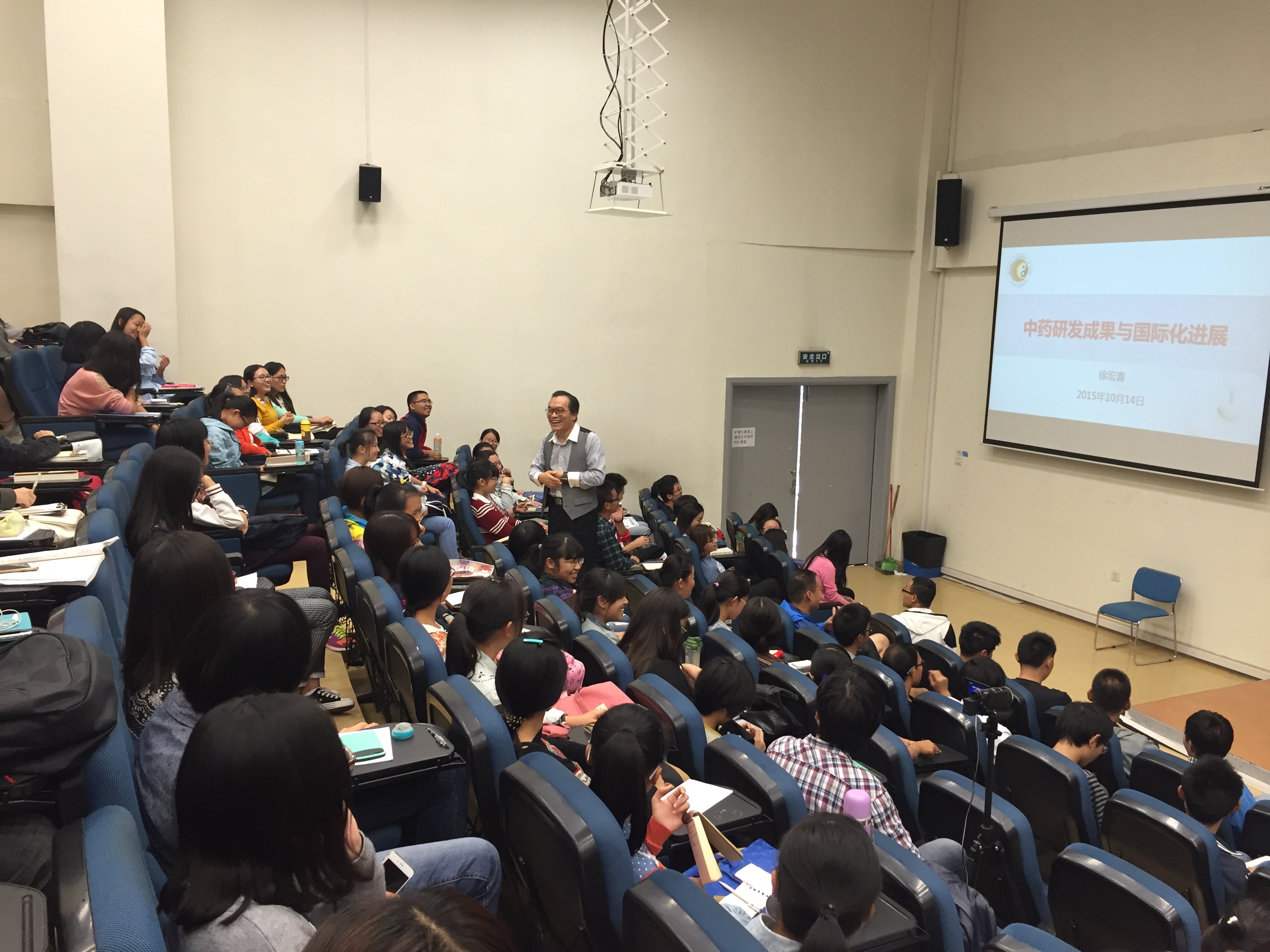 为更好地帮助中药学院新生解决学习、生活及对专业的迷茫,中药学院于2015年10月14日下午1:30在6302举办了2015年中药学院新生教育讲座,本次讲座邀请到了中药学院院长徐宏喜教授、教务处副处长陈怡老师及中药学院副院长沈岚教授来与新生零距离互动,共展专业前景。