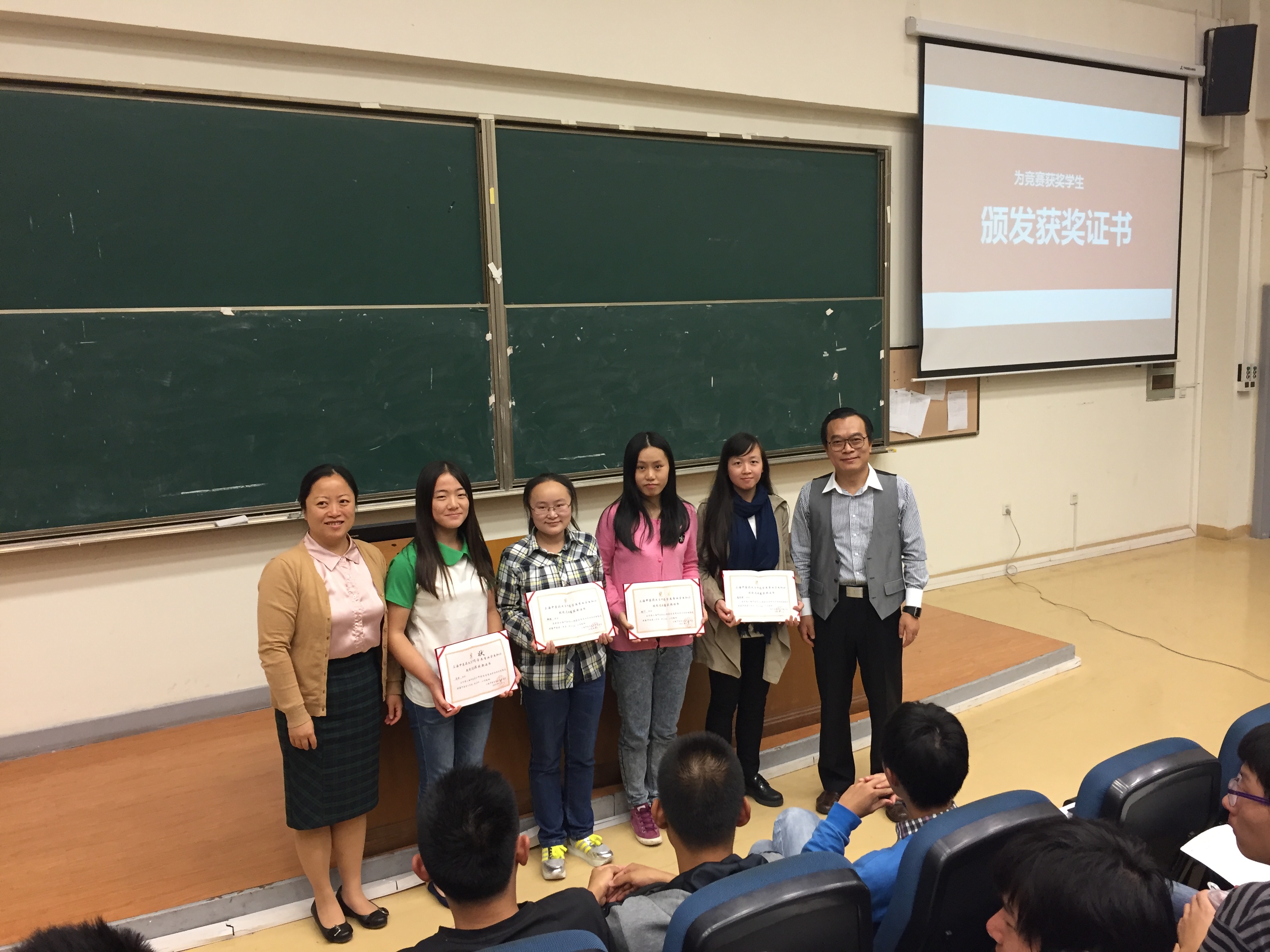 在沈岚教授简洁的开场致辞后,徐宏喜教授上台,在全体学院师生热烈的掌声中,为本学院的钱珺等四位高年级同学颁发中药学竞赛奖状,肯定了他们在学术上取得的成果并给予鼓励,也希望新生同学多多向获奖的学姐们学习。