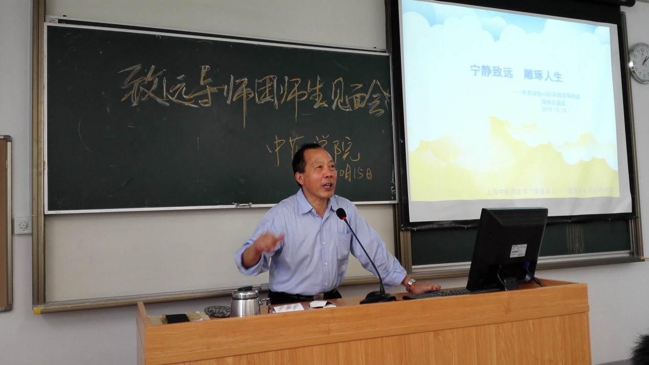 陶老师从学生的现状分析到导师团成立的作用,与学生分享了他自己对一些事物的看法,给学生提出要珍惜当下,把握现在。既要有远大的理想,对未来充满希望,又要脚踏实地,切实规划,要有不断克服困难,挑战自己的内驱力,在遇到问题与困难时,借助导师团的帮助,矫正自己的行为目标,并确立更符合自己成长的路径。……从专业知识学习到学生的需要,从独生子女教育谈到了中药学的发展……学生们听得如痴如醉。