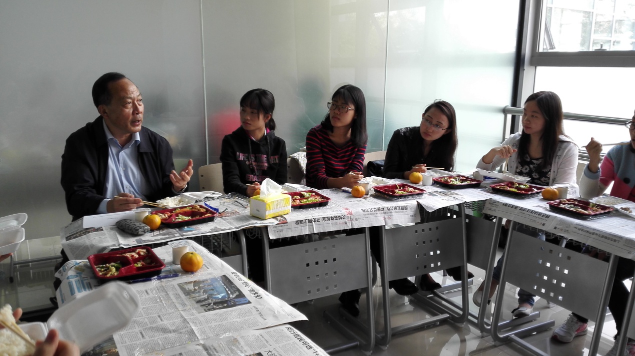 中午11:30—12:30,中药学院邀请了导师团的团长及校外人士,分成六个组,每组15人,与大咖们共进午餐,他们分别时扬帆导师团团长陈凯先院士、扬帆导师团团长李医明教授及来自家化集团的六神花露水的发明者李慧良教授,也是扬帆导师团的中药成员,此外,还有藤跃导师团的团长徐宏喜教授,致远导师团团长陶建生教授,闪“药”导师团的王峥涛教授。能够参加此次大咖微观察,与大咖共进午餐的学生都是从各年级学习和表现优秀的学生,大咖们从学习、生活、个人的努力奋斗等方面与学生们边吃边聊,学生们也不断地和大咖提出各种问题,在生活化的场景中,学生们感受到大咖们的亲切,也感受到大咖们对学生在学习、生活等方面的要求,这样接地气的活动得到了学生们的好评,他们都在期待着有更多这样的机会与大咖们多接触,多交流,从他人的丰富的人生阅历中获得成长。