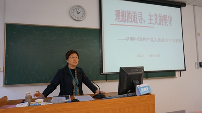 随后,社科部主任亓曙冬教授讲了题为“理想的追寻,主义的坚守”的第一课,亓教授怀着对党的满腔热情,声调高昂,讲述了中国共产党选择马克思的理想并长期坚守马克思主义的非凡历程,阐明了共产党领导中国的必然性、必要性。
