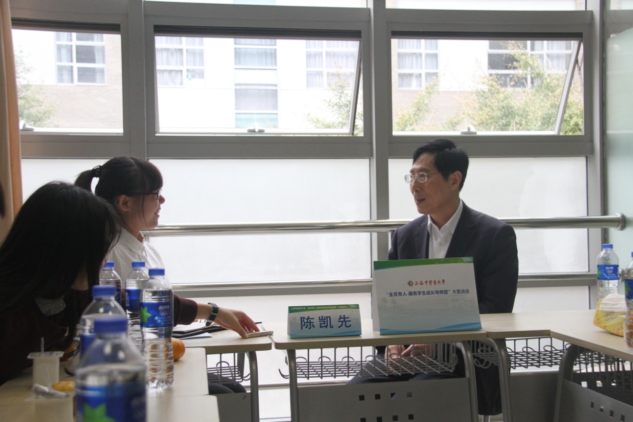 2015年深秋的某个下午,扬帆导师团的孩子们迎来了他们人生中的一个重要时刻,也是令他们一生都无比幸福和值得回味的时刻,他们在入学还不到两个月的时刻,采访了扬帆导师团的团长——陈凯先院士,此次采访,用学生们的话来说,陈院士用江南人特有的绵绵细语给他们讲述了他过去的求学经历以及他对年轻学子们的殷殷期待,学生们用无比崇敬的心情倾听陈院士的过去,他在求学道路上不断坚持、不断磨砺自己的毅力,他对学生提出的学会做人、学会做事的殷殷期待,他还结合药学中英合作专业提出了自己的看法和见解,他认为“为了更好的与国际接轨,我们还需要构建一座新的桥梁。‘两手都要抓,两手都要引’。一手就是要抓我们对中医药学的投入与学习。我们要认识到中医药学是一个宝库,越来越多的事情证明了这一点,屠呦呦是新的证明,以及之前首次将砒霜利用到临床治疗的张亭栋教授和将其进一步科学的研究和提升的陈竺院士都是有力证明。当今的世界所面临的医学问题简单的按照西方的思路是远远不行的。”“为了做好这座桥梁,我们要珍惜我们的传统,理解其中的宝贵价值,好好学习并继承中医药的精髓。对于某些采取简单主义、虚荣主义态度,仅重视现代科学,将中国古代科学视为落后文化的人,他们只是没有真正把握中医药的精髓所在。”