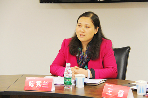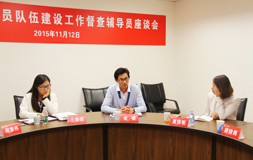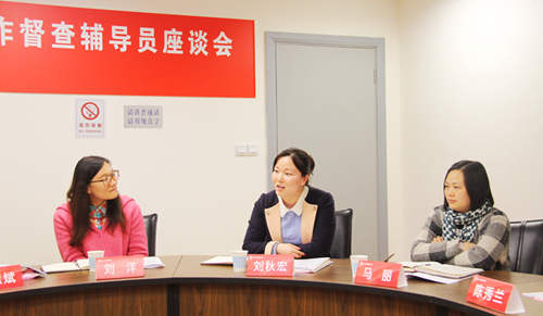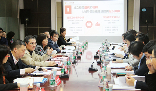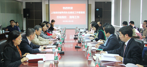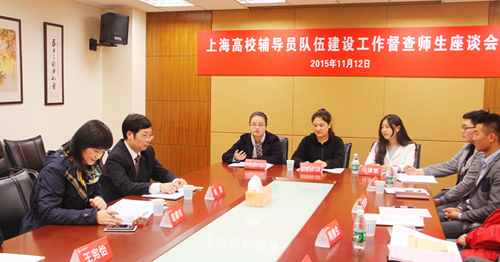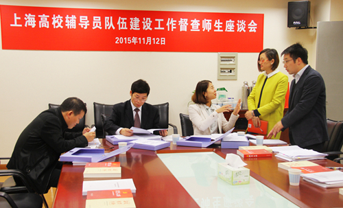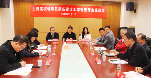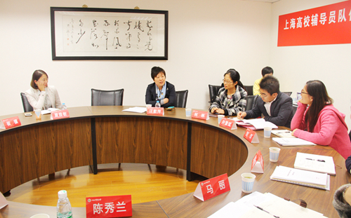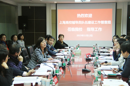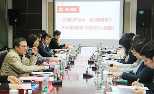 督导组专家、上海海洋大学学工部部长夏雅敏就我校辅导员队伍建设工作的内容进行探讨