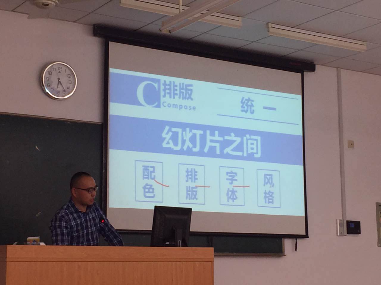 刘老师由浅入深地与同学们分享了自己运用PPT的经验:排版的工整、字体的选择、颜色的搭配、图片的显示、模版的创作以及设计的思路,环环相扣,生动实用。互动环节中,同学提出各种在运用PPT时的困惑,刘老师也予以细心解答。