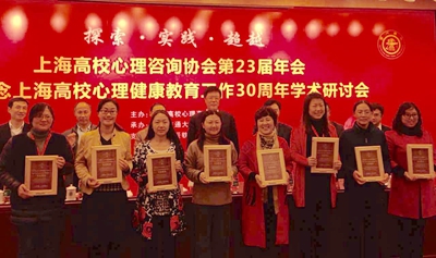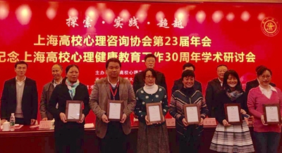2015年11月下旬,上海高校心理咨询协会第二十三届年会暨纪念上海高校心理健康教育工作30周年学术研讨会在上海交通大学徐汇校区隆重召开,来自上海60余所高校的近200位心理健康教育工作一线专业人员代表参加了此次年会,大会对2015年上海高校心理咨询协会先进集体、先进个人等奖项获得者进行表彰,我校心理咨询与发展中心荣获“2015年度上海高校心理健康教育工作先进集体”称号,任翔荣获“2015年度上海高校心理健康教育工作先进个人”称号。我校学工部部长、上海高校心理咨询协会副理事长陶思亮、团委书记、心理咨询与发展中心主任成琳及我校部分专兼职心理咨询教师出席了本次会议。