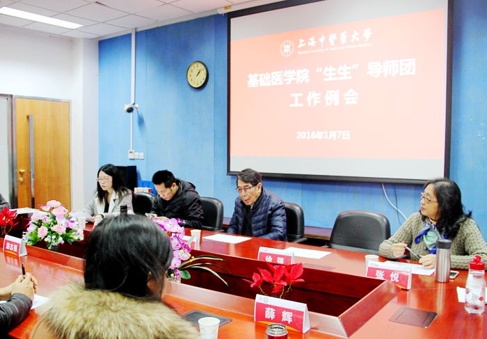 2016年1月7日12:50,基础医学院“生生”导师团专题研讨会暨工作总结会在7417会议室举行。生生导师团团长、上海市高校教学名师、终生教授、博士生导师段逸山教授,导师团成员徐强、吴中平、张挺、张悦、邵水金、潘志强和薛辉等老师,以及辅导员洪静、导师团学生助理参加了本次工作总结及专题研讨会,会议由洪静老师主持。
