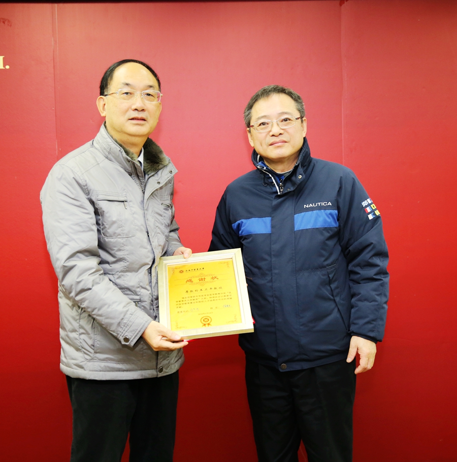 6、校党委何星海副书记为我校2015年度“全员育人--服务学生成长导师团”一等奖获奖团队颁发证书