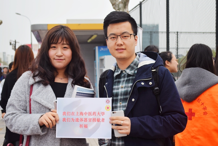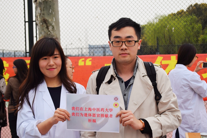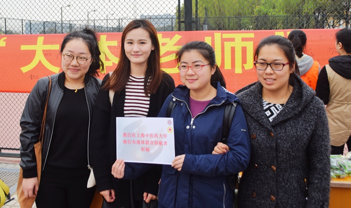“我(们)在上海中医药大学,我(们)为遗体器官捐献者祈福 ”。