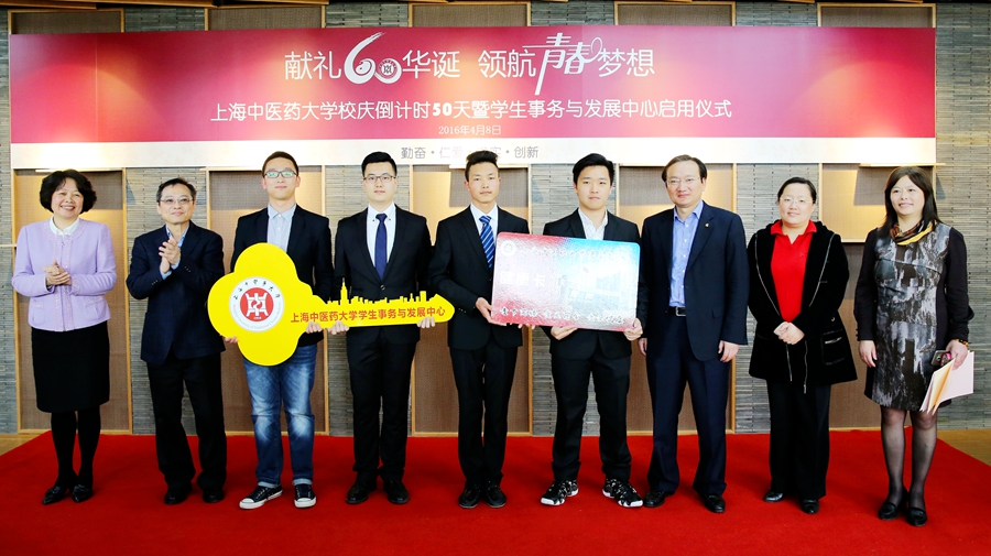 2016年4月8日中午12点30分,上海中医药大学校庆倒计时50天暨学生事务与发展中心、龙舟训练基地、健身中心启用仪式隆重举行。校党委书记张智强、校长徐建光、校党委副书记施建蓉、校党委副书记、副校长朱惠蓉、副校长张瑾和来自党委校长办公室、基建、后勤、设备、保卫、信息、学生工作等职能部门的老师以及全校师生代表共同参加了仪式,活动由朱惠蓉主持。