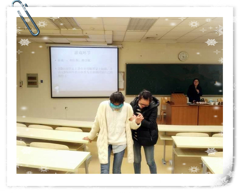 看不到前方的路,但是有同伴的臂膀可以紧紧依靠,我知道要去向何处,你愿与我携手共往吗?“相信你,指引我”这个游戏环节充分考验了同学们之间的信任,也增进了平日的友谊。
