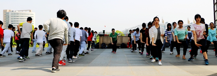 2016年5月4日,上海中医药大学体育部康萌老师受邀来华师大闵行校区传授功法—易筋经。60名2015级中医八年制学生踊跃参加。此次活动为功法教学第二次课程,在这次的课程中康老师传授了中医八段锦的前四套动作。