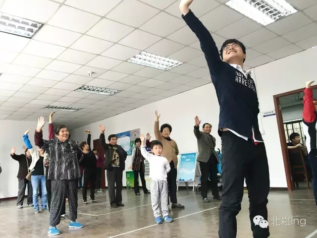 中药学院学生第二支部梁凌霄为大家讲解了练功十八法并教授居民做起了养生操。