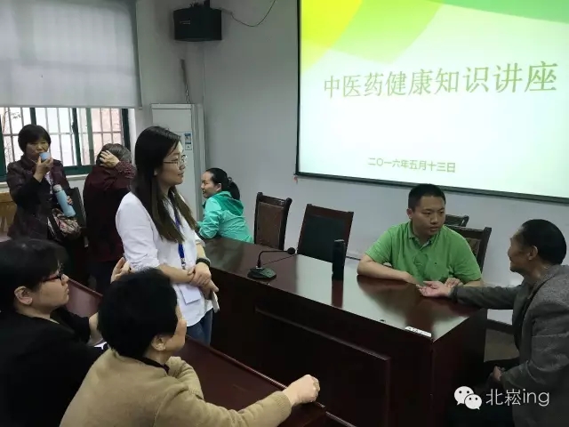 2016年5月13日上午,上海中医药大学中药学院党总支副书记沈漫老师带领各学生支部书记、委员,学生党员代表一行16人前往北崧居委会,与北崧居委会党支部共同商议中草药进社区等事宜,为城乡支部结对共建、学生党员实践“两学一做”学习教育铺路搭桥。同时开展了“中医药健康知识”讲座等其他活动。青浦区健促会、北崧社区卫生服务中心相关人员出席会议,近80余社区居民参与了此次活动。