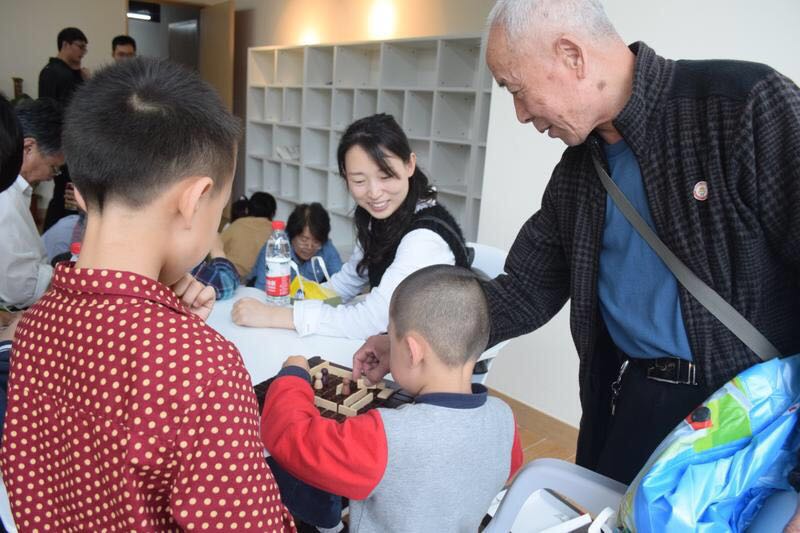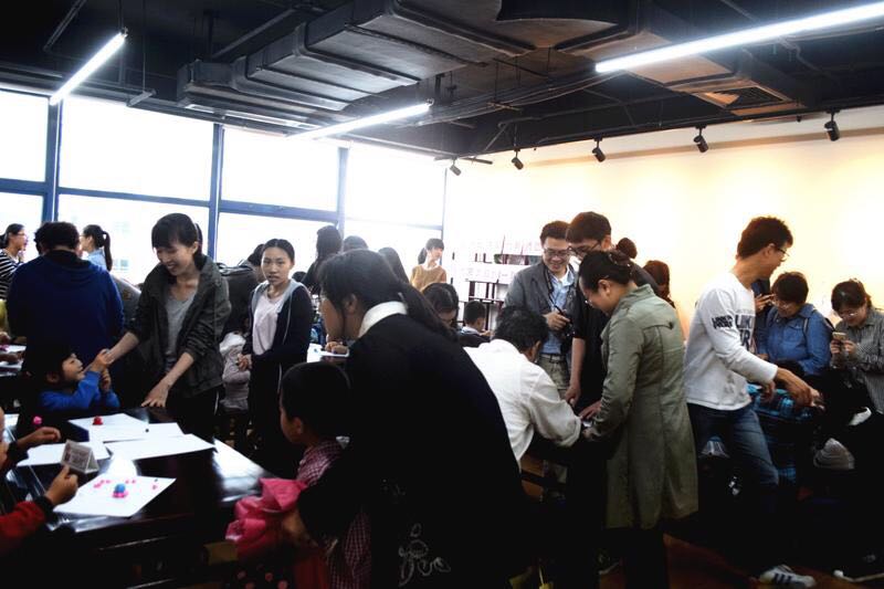 在一位大哥哥的简单教学下,小朋友开始动手了,别的大孩子和家长们也都在一旁进行帮助和辅导。小朋友们的动手能力虽然没有那么好,但是他们天马行空的想象力以及对这个世界纯真无暇的眼光,使他们可以随意发挥,每个小朋友都做出了非常特别以及具有童真的作品,最后经过烤制,可以带回家进行留念。小朋友之间从一开始的互相有些陌生羞涩,到后来开始互相玩耍。之后又进行了游戏环节,小朋友们在一起有说有笑,有玩飞行棋的,有玩五子棋的,有搭积木的……整个活动场面热闹有趣,欢笑连连。