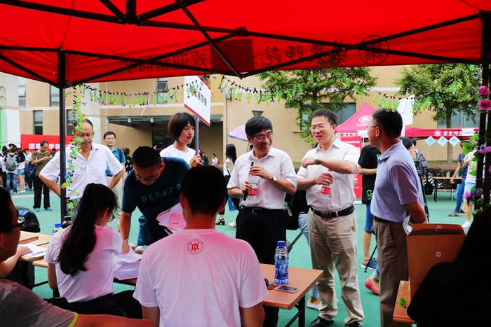 2016年9月4日上午8:00,16级中医八迎新工作在华东师范大学闵行校区大学生活动中心C区开展。29名15级中医八学生在基础医学院学生自主管理委员会(闵行校区)招募下自愿申报并担任16级中医八新生志愿者,配合新生辅导员何璠开展新生报到接待工作。华东师范大学党委书记童世骏、分管学生工作党委副书记方平、学工部部长余佳亲临中医专业招生现场,亲切慰问迎新志愿者。上海中医药大学基础医学院党委副书记郭峰到达迎新现场,问候志愿者和新生。