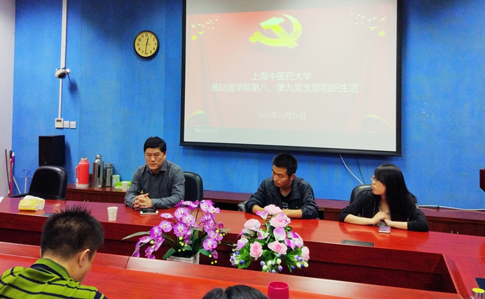 2016年10月21日中午,基础医学院第八、第九党支部汇聚在7417会议室开展了本学期第一次党支部组织生活。基础医学院党委书记徐强老师参加了本次活动,第八党支部金珏老师主持。