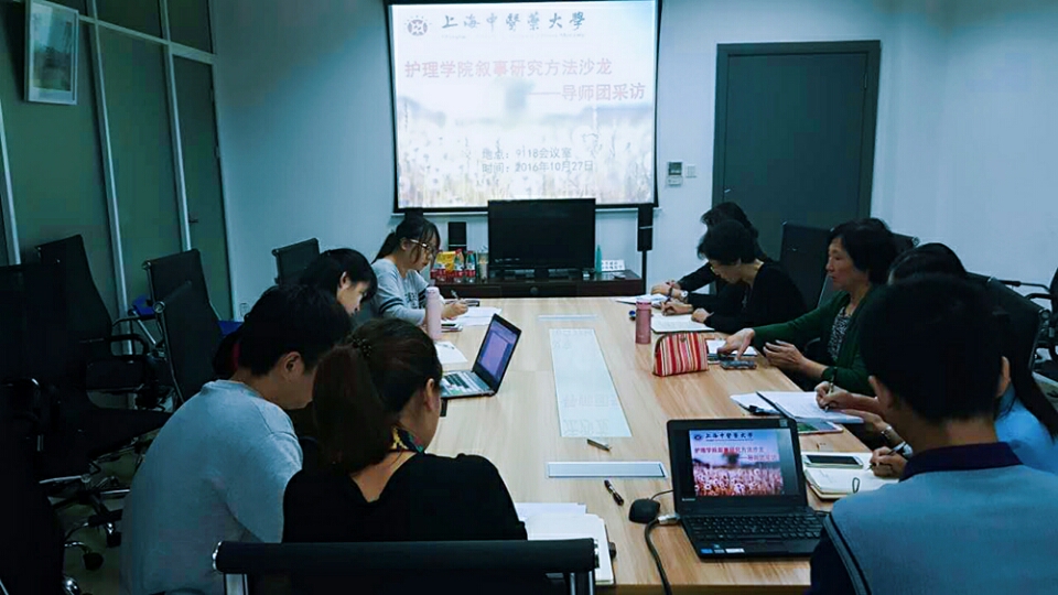 为了进一步保证导师团采访活动的延续性,继续深入采访稿的编辑排版工作,2016年10月27日,护理学院在9118会议室召开了护理学院叙事研究方法沙龙。参与此次沙龙会议的有护理学院党总支书记应丽君,护理学院教授李丽萍,廖晓晴、李玉霞、吴冬春、柳逸青、刘晓等老师参加,还有负责采访的小记者团也参加了此次的沙龙活动,本次活动由刘晓老师主持。