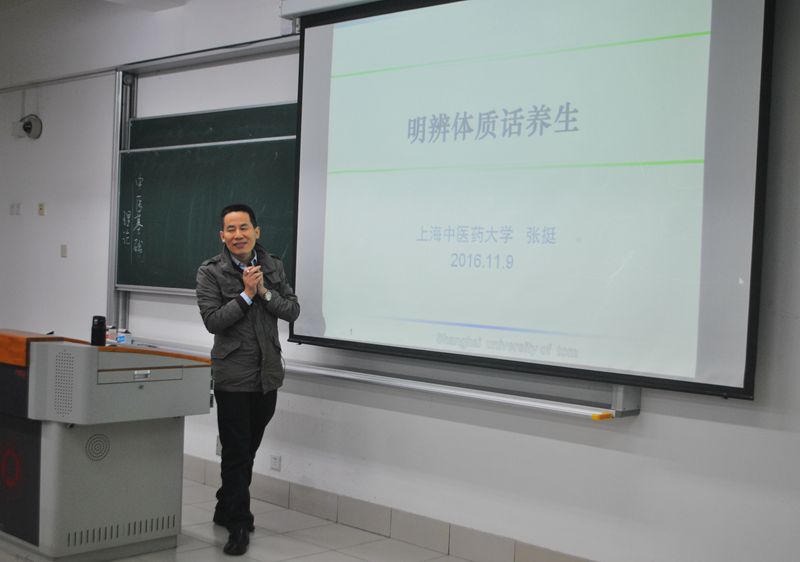2016年11月9日下午14:30,上海中医药大学基础医学院中医基础理论教研室主任张挺受邀,为同学们进行了题为“明辨体质话养生”的中医讲座。60名16中医八年制同学积极参加。