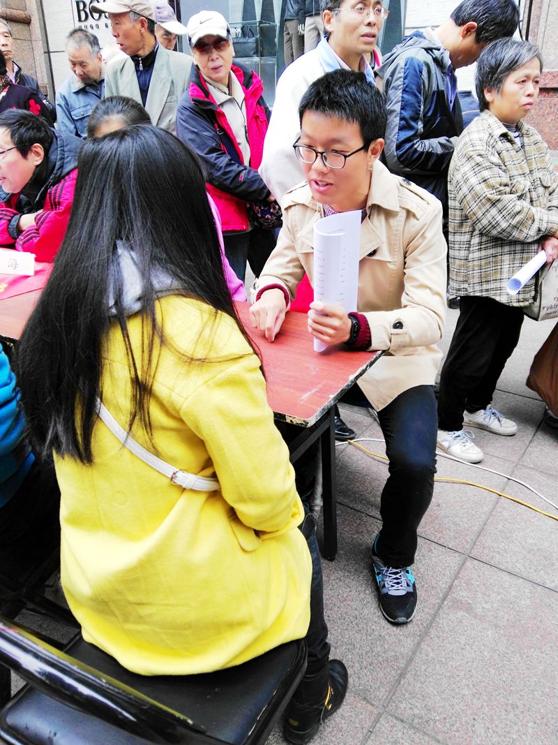 服务团队来到活动现场时,好八连的同志们也已个个精神抖擞,准备就绪。好八连已驻守上海60余年,勤俭朴素的作风、热心真诚的服务在上海远近闻名,更是上海人心中的一座精神丰碑。本次基础医学院第二、第九党支部组成联合小队与“好八连”的同志们携手合作,为街道的居民提供贴心的服务。服务团队的成员们分工协作,学医的师生负责为居民量血压把脉看诊,其他师生则负责分发精心准备的养生小常识。萧萧瑟瑟的冷风吹不冷成员们火热的志愿激情,淅淅沥沥的细雨浇不灭他们炽烈的服务热情。