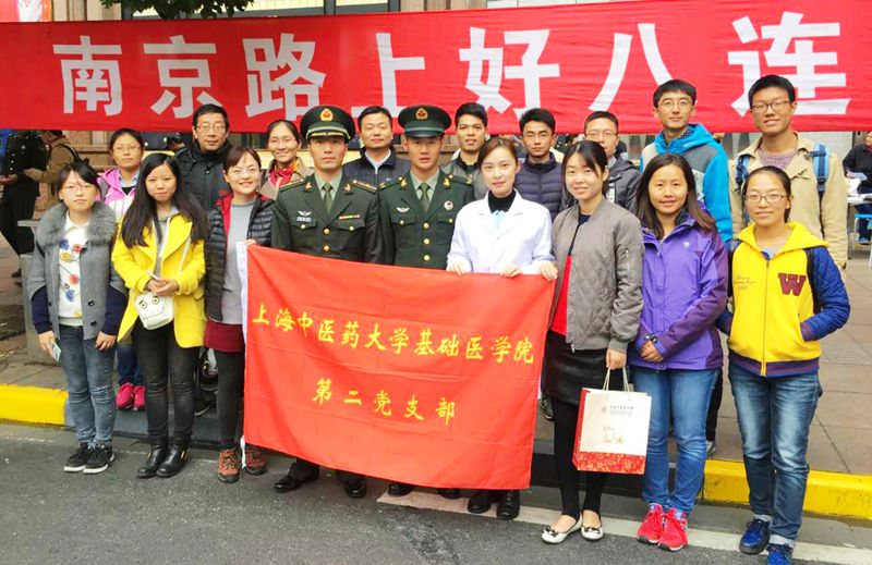 2016年11月10日上午7点半至9点,基础医学院第二、第九党支部组成了一批师生联合服务团队,来到南京东路新世界商城参加“南京路上好八连为民服务”活动。