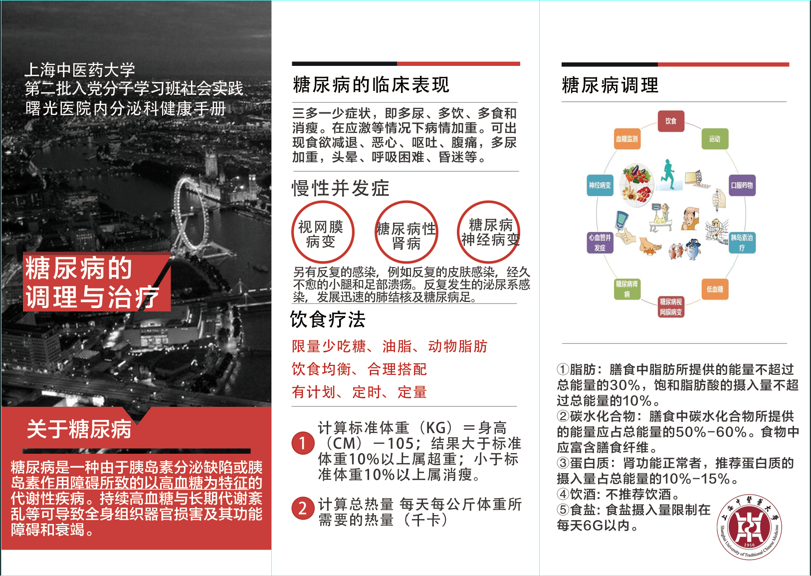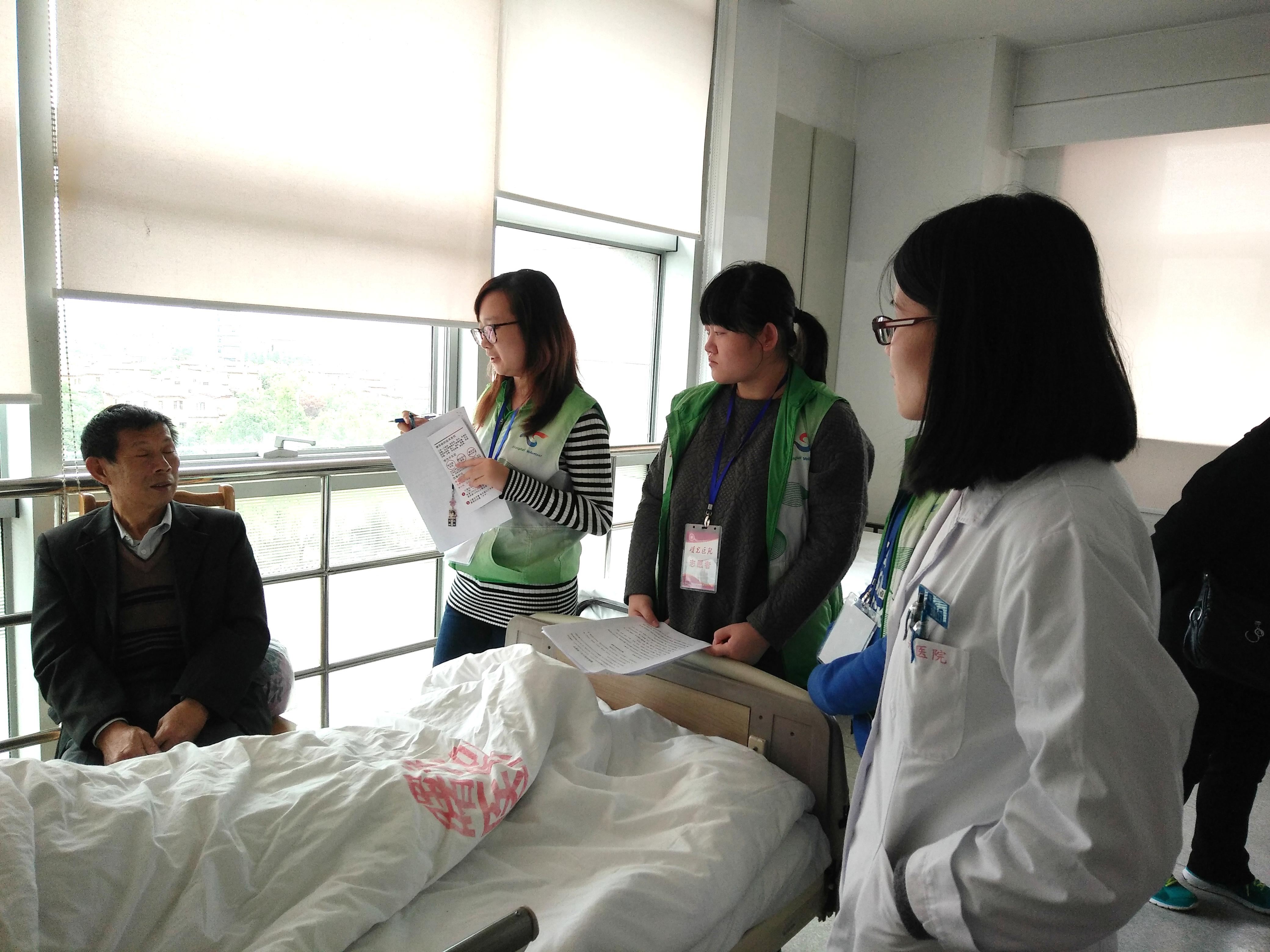 志愿者们以“ 奉献、有爱、互助、进步“为宗旨,针对曙光医院(东)内分泌科进行了问卷调查并制作了相关的健康宣传手册。然而纸上得来终觉浅,绝知此事要躬行。志愿者队伍分为两组为两位糖尿病病人进行健康宣教,在医院老师的带领下,用自己学习到的知识为病人提供中医健康指导,教病人认穴位,为病人疏导心理负担。在志愿者服务的过程中,志愿者们还注重沟通交流,在实践中发现问题,为今后活动更好的开展打下基础。此次活动得到了医院老师和病人的肯定,深入践行了党的群众路线教育实践活动,更把我院优质的医疗服务送到了群众身边。为社会奉献了自己力所能及的力量,极大的激发了入党积极分子们的奉献社会、服务社会的意识。