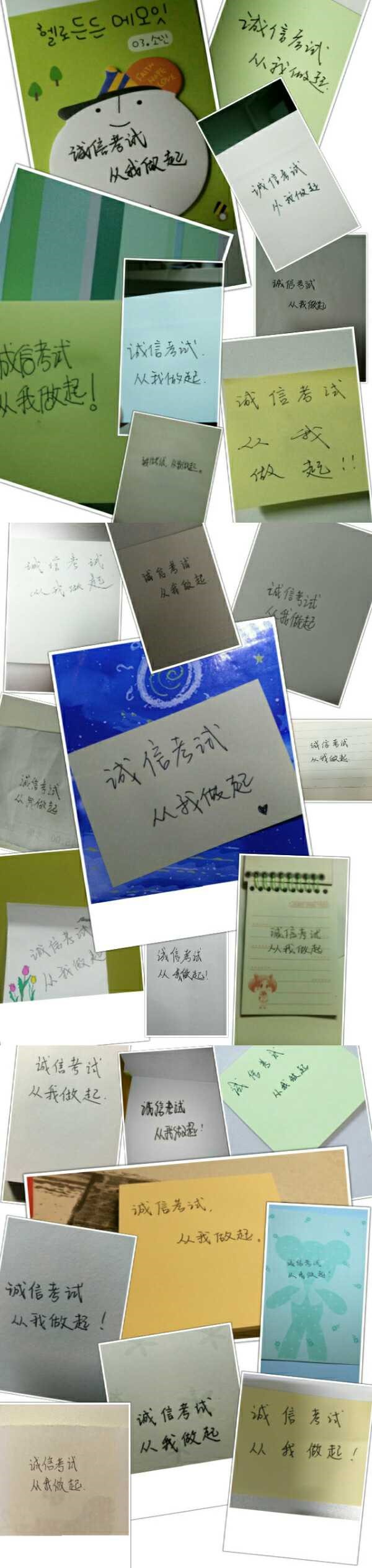 为了以更好的态度去对待这次考试,我们护理学院的学子发起了“诚信考试,从我做起”的活动,用自己独特的方式表达了自己的考试态度。