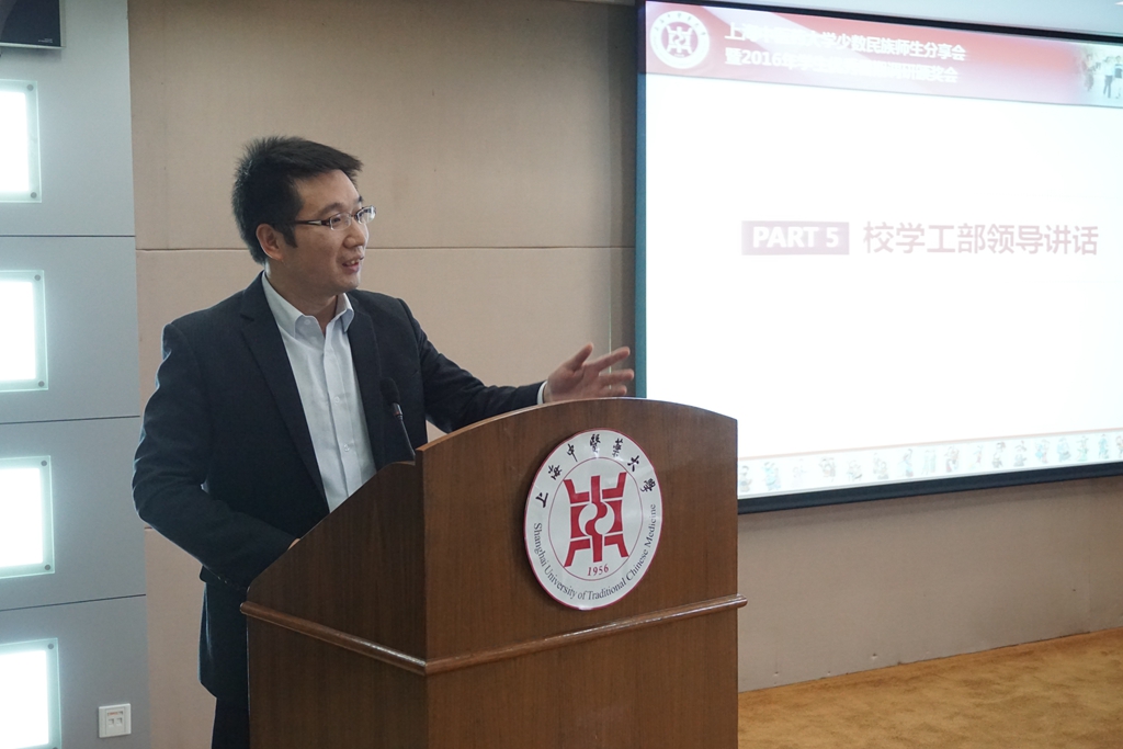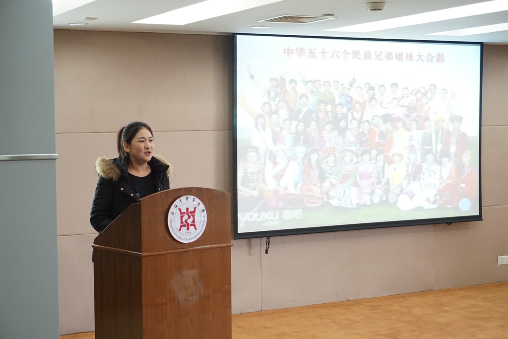 1月4日,由上海高校辅导员洪汉英工作室和上海中医药大学少数民族联谊会共同举办的少数民族师生分享暨学生优秀暑期社会调研颁奖会在国际教育学院三楼大会议顺利举行。上海中医药大学学生工作部(处)部长陶思亮,上海中医药大学党委、校长办公室副主任、上海中医药大学少数民族联谊会常务副会长向延卫,上海中医药大学党委组织、统战部副部长徐敏,上海中医药大学民族联第六届委员的部分委员及全体新疆籍少数民族同学参加了此次分享会。